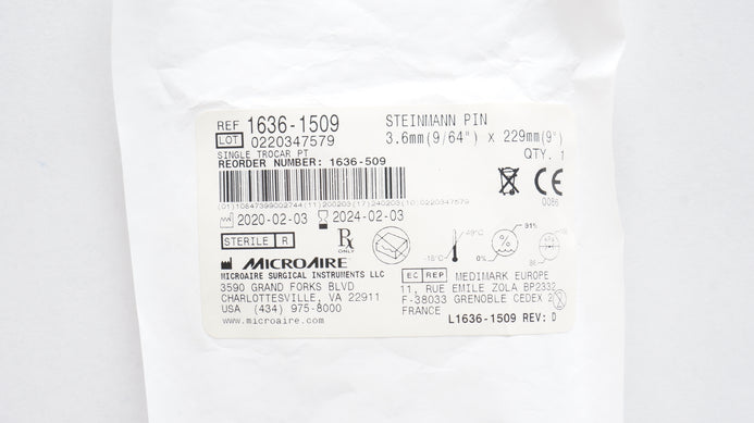 - Microaire 1636-1509 Single Trocar PT, Steinmann Pin 9/64In x 9In (x)
