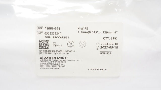 - MicroAire 1600-945 K-Wire 0.045inch x 9inch - Pack of 5