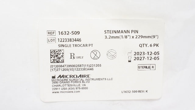 - MicroAire 1632-509 Steinmann Pin 1/8inch x 9inch - Pack of 6