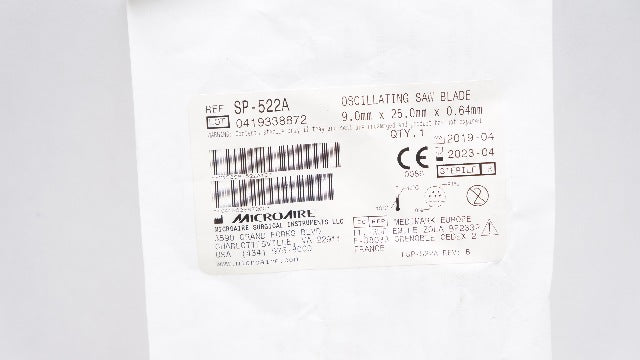 - Microaire SP-522A Oscillating Saw Blade 9.0 x 25.0 x 0.64mm (x)