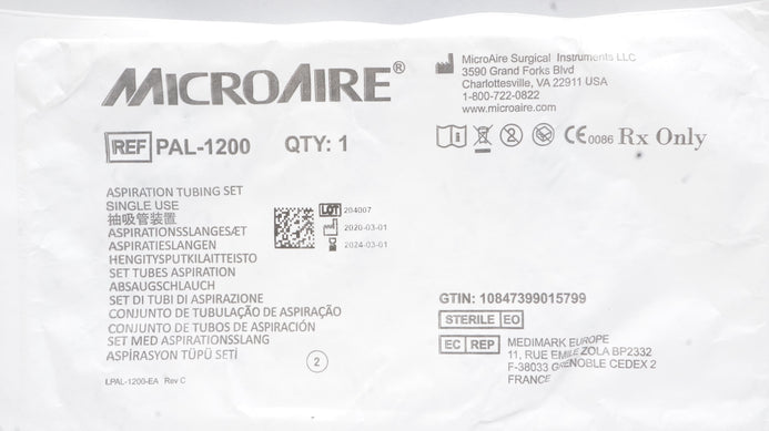 - MicroAire Surgical PAL-1200 Aspiration Tubing Set (x)