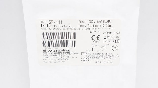 - Microaire Surgical SP-111 Small Oscillating Saw Blade 9mmx 24.6mm x 0.38mm (x)