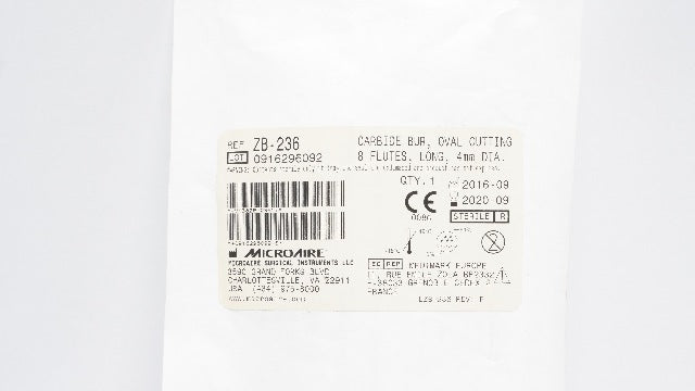 - MicroAire ZB-236 Carbide Bur, Oval Cutting 8Flutes, Long, 4mm DIA. (x)