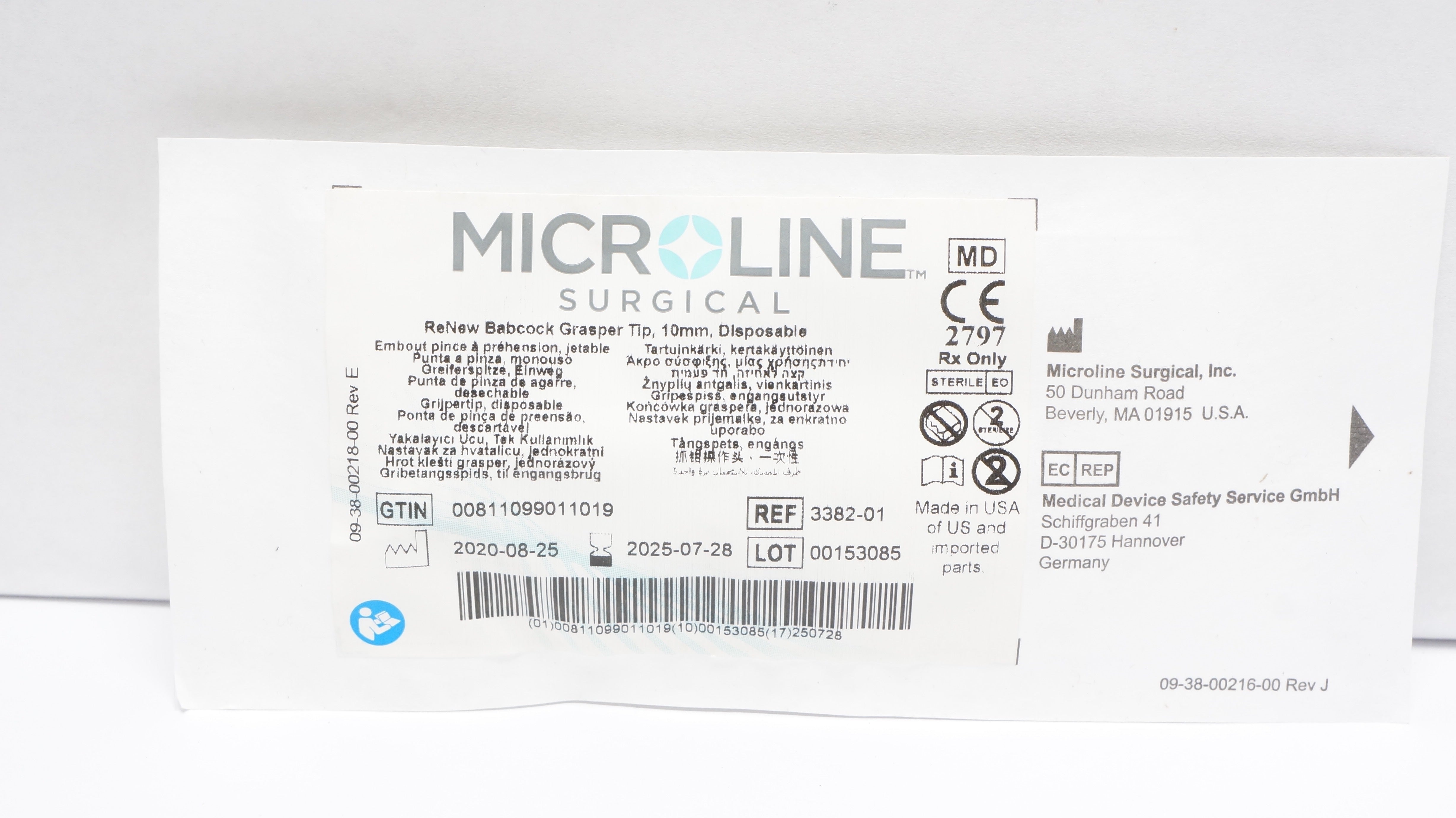 - Microline Surgical 3382-01 ReNew Babcock Grasper Tip, 10mm Disposable (x)