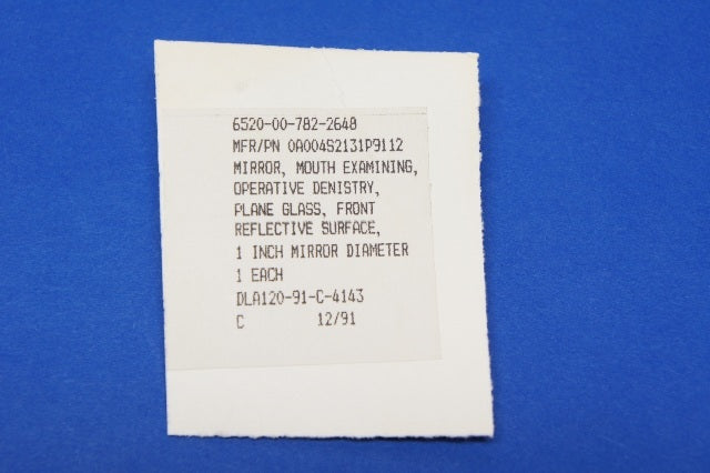 Iii part name assigned by controlling agency: mirror mouth examining plane glass front reflective surface
