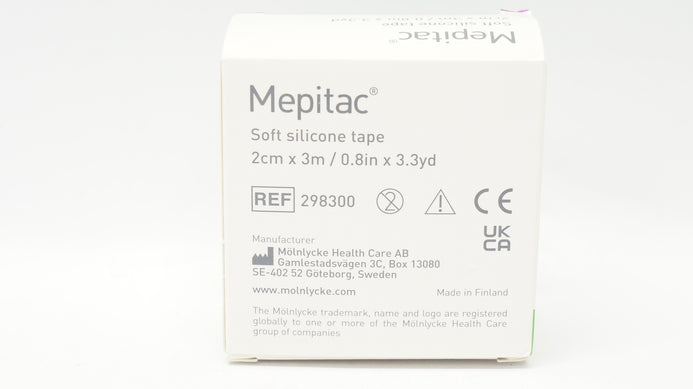 - Molnlycke 298300 Mepitac Safetac Soft Silicone Tape 0.8inch x 3.3yds.