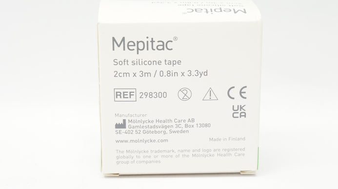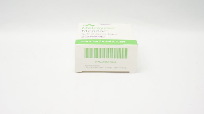 - Molnlycke 298300 Mepitac Safetac Soft Silicone Tape 0.8inch x 3.3yds.
