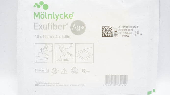 - Molnlycke 603422-00 Exufiber Ag+ Gelling Fiber Dressing 4inch x 4.8inch (x)