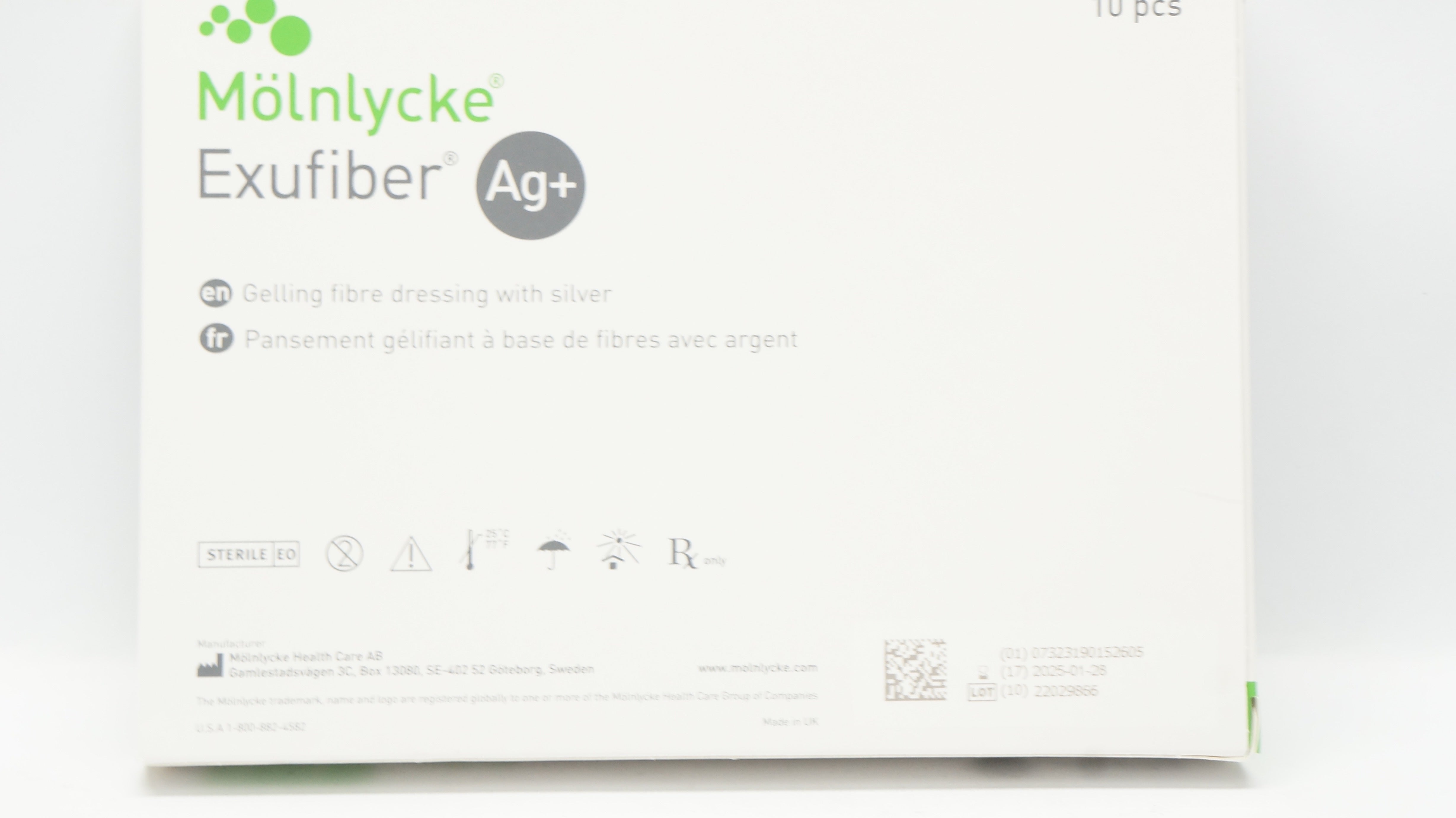 - Molnlycke 603422 Exufiber Ag+ Gelling Fiber Dressing 4 x 4.8inch (x) - Box of 10