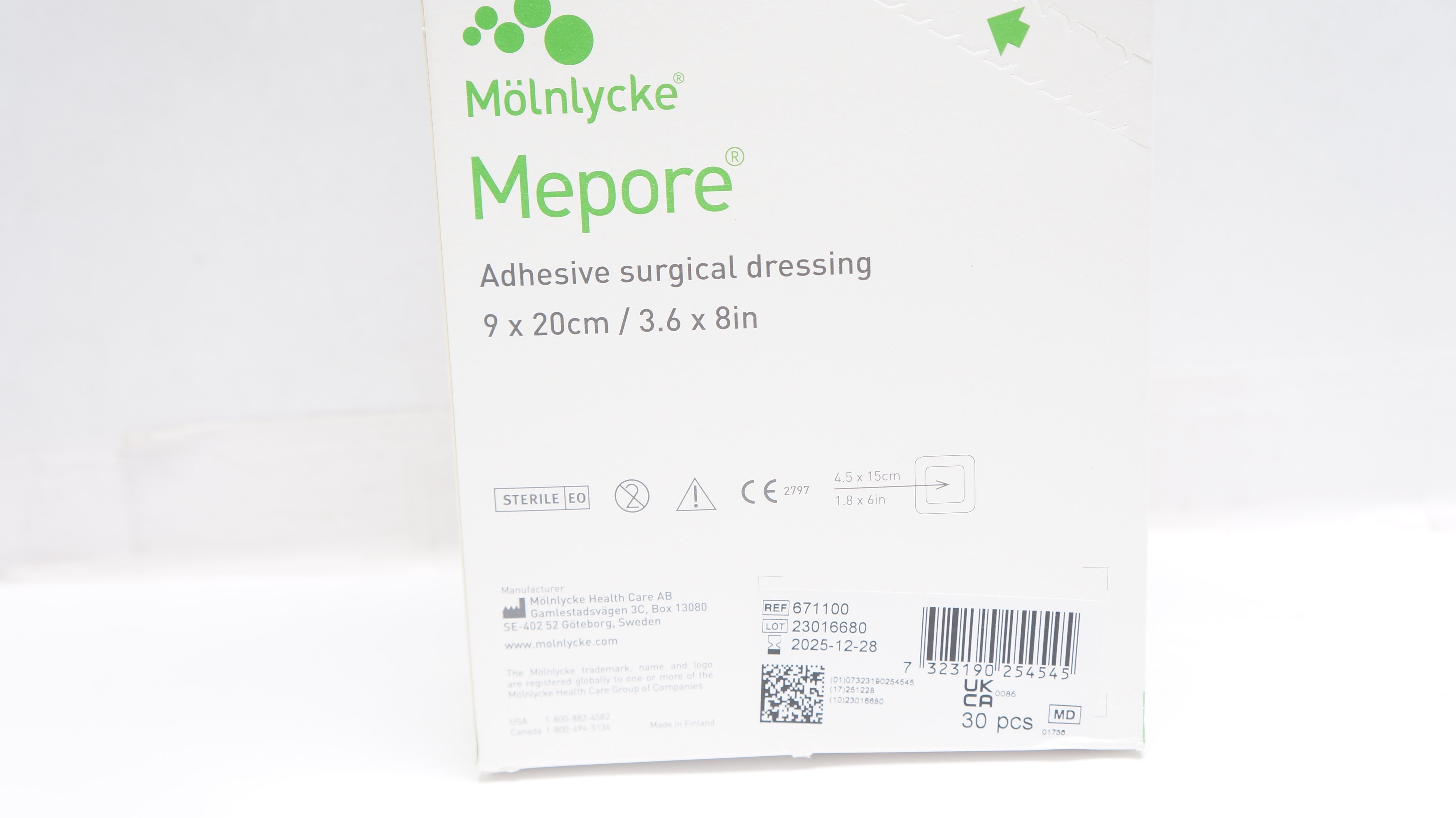 - Mölnlycke 671100 Mepore Adhesive Surgical Dressing 3.6 x 8In - Box of 30