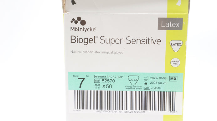 - Molnlycke 82570 Biogel Super-Sensitive Surgical Gloves, Size 7 - Box of 50
