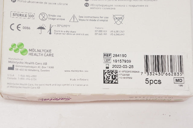 - Molnlycke Health Care 284190 Mepilex Lite Dressing 4inch x 4inch - Box of 5