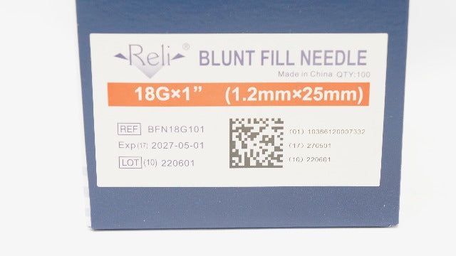 - Myco Medical BFN18G101 Reli Blunt Fill Ndle 18G x 1 inch - Box of 100