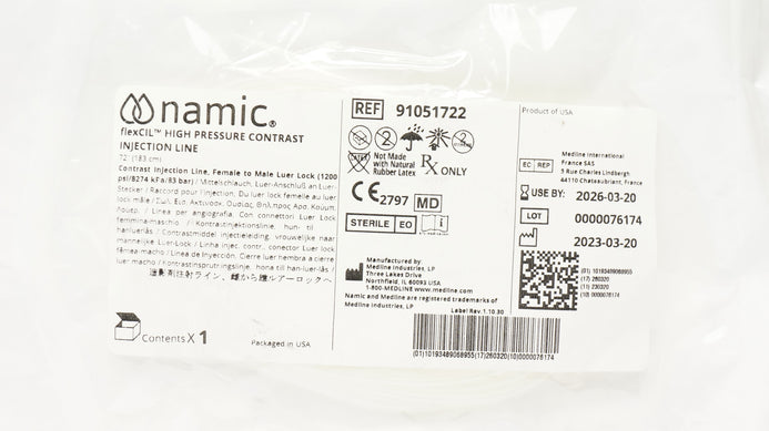- Navilyst 91051722 Namic FlexCIL High Pressure Contrast Injection Line 72inch