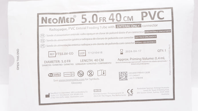 - NeoMed FTS5.0V-EO Radiopaque,PVC Enteral Feeding Tube W/Connector 5.0Fr 40cm (x)