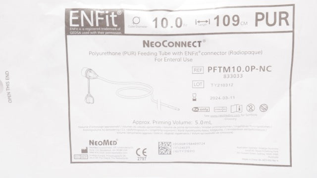 - NeoMed PFTM10.0P-NC NeoConnect PUR Feeding Tube w/Connector 10.0Fr x 109cm(x)