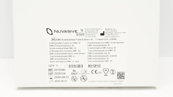 - NuVasive 2010380 EMG Endotracheal Tube 8.0mm I.D. x 11.0mm O.D. (33FR)(x)