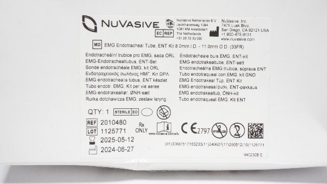 - NuVasive 2010480 EMG Endotracheal Tube, ENT Kit 8.0mm ID - 11.0mm OD(x)