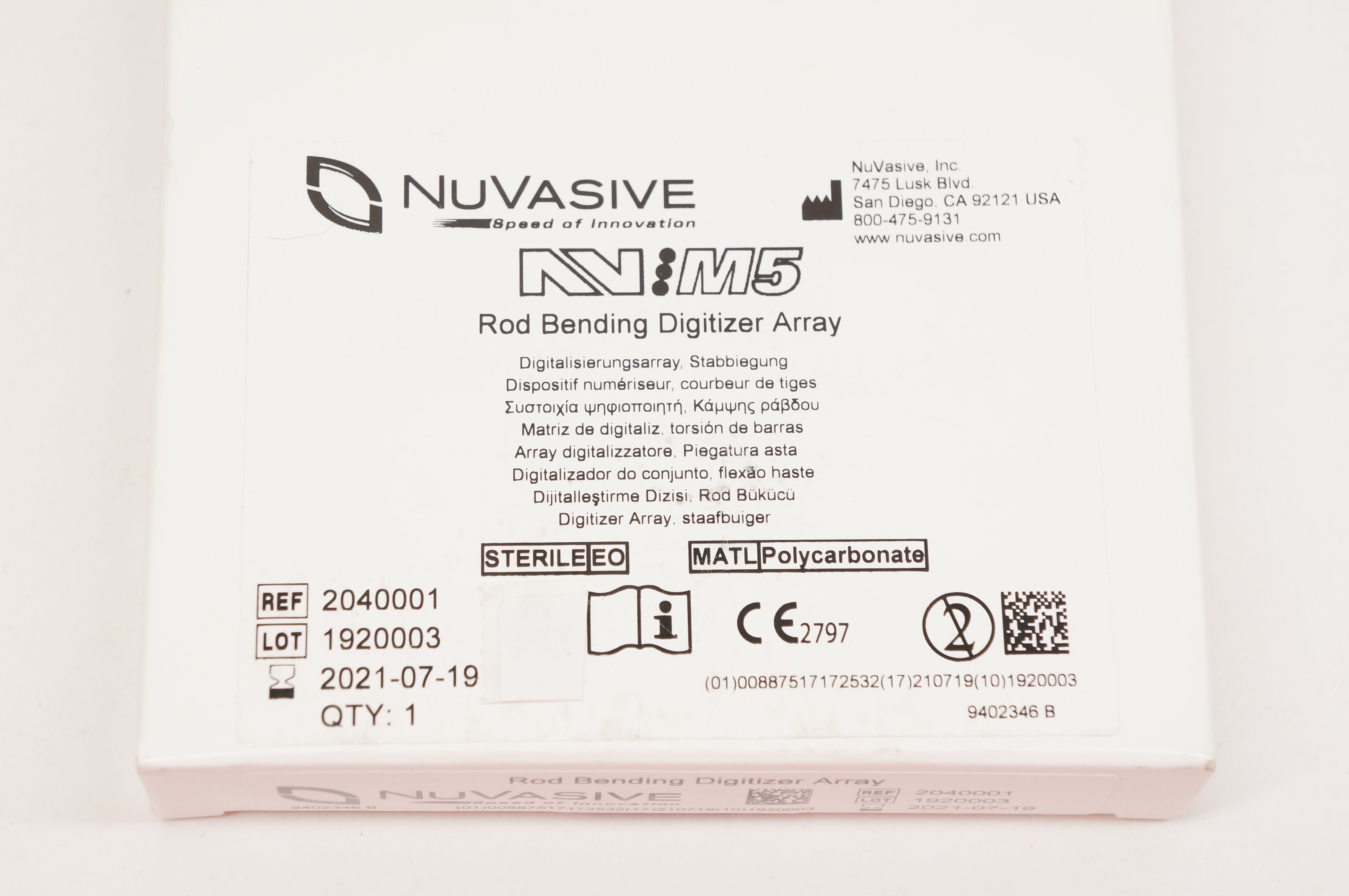 - NuVasive 2040001 NV M5 Rod Bending Digitizer Array