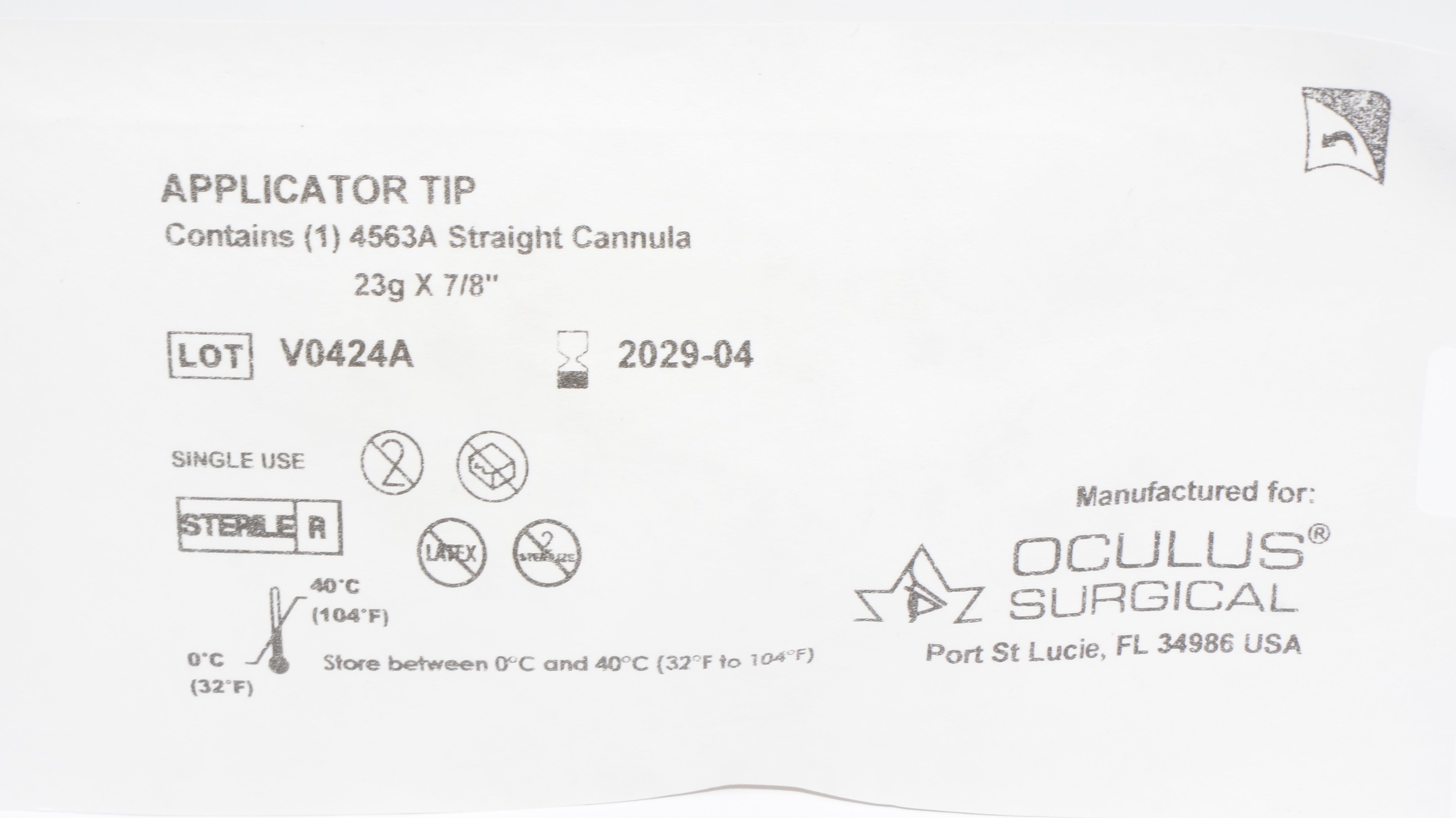 - Oculus Surgical 4563A Applicator Tip Straight Cannula 23g x 7/8In