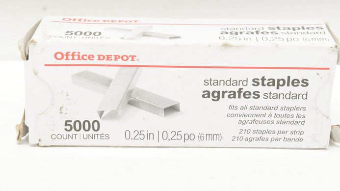 - Office Depot Standard 210 Staples 0.25inch - Box of 5000