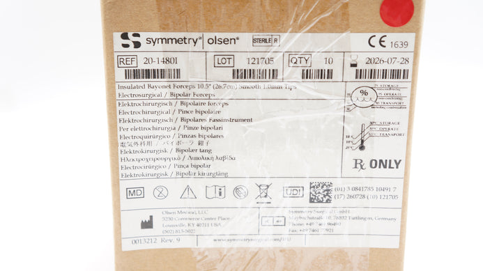- Olsen 20-14801 Symmetry Insulated Bayonet Forceps 10.5inch - Box of 10