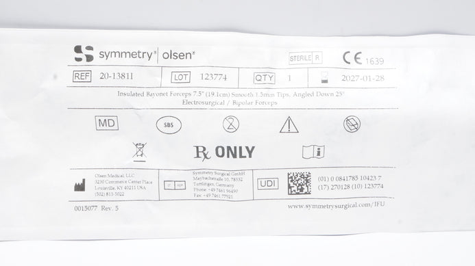 - Olsen Medical 20-13811 Symmetry Insulated Rayonet Forceps 7.5inch 1.5mm Tips