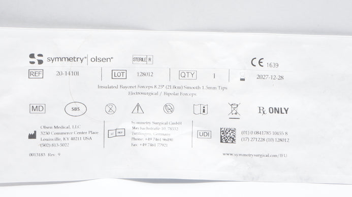 - Olsen Medical 20-1410I Symmetry Insulated Bayonet Forceps 8.25inch w/1.5mm Tips