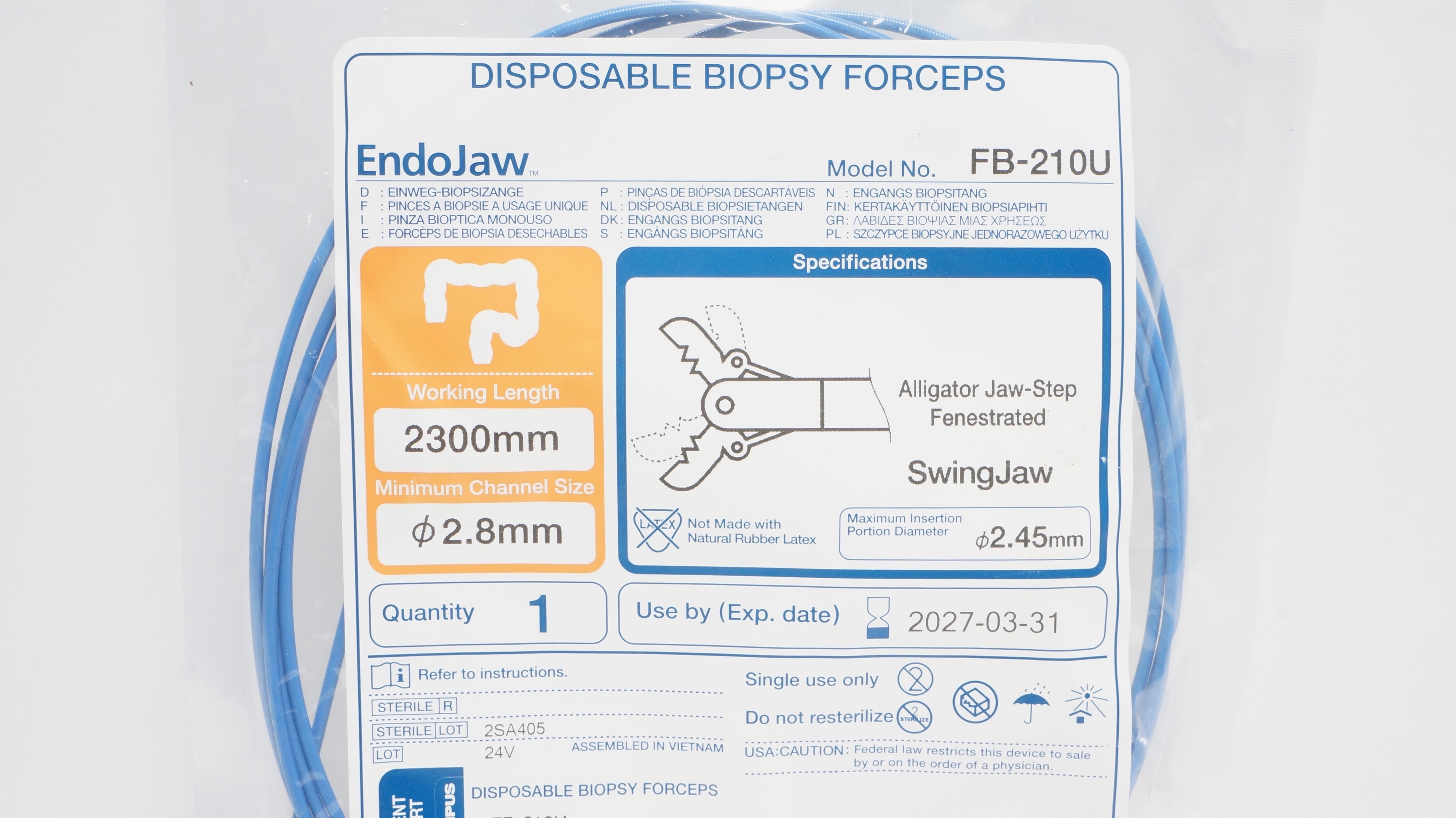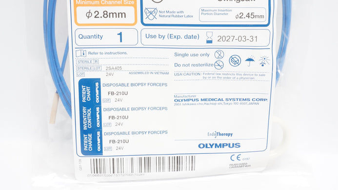 - Olympus FB-210U EndoJaw Disposable Biopsy Forceps 2300mm x 2.8mm x 2.45mm