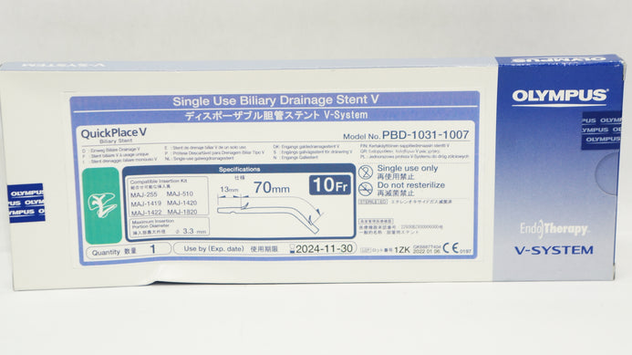 - Olympus PBD-1031-1007 QuickPlace V-System Biliary Drainage Stnt 10Fr x 70 x 13mm