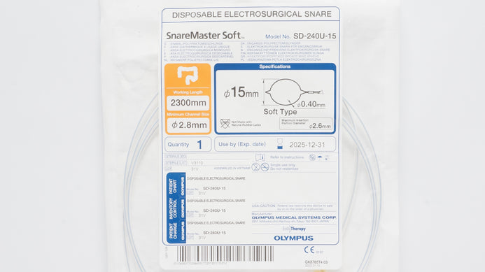 - Olympus SD-240U-15 SnareMaster Soft Electrosurgical Snare 2300mm x 2.8mm