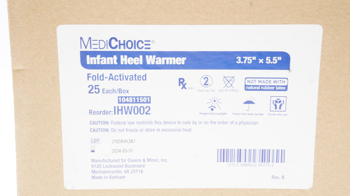 - Owens & Minor IHW002 MediChoice Infant Heel Warmer 3.75 x 5.5in - Box of 25 (x)
