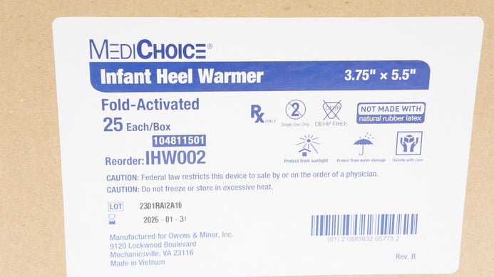 - Owens & Minor IHW002 MediChoice Kids Infant Heel Warmer 3.75 x 5.5inch-Box of 25