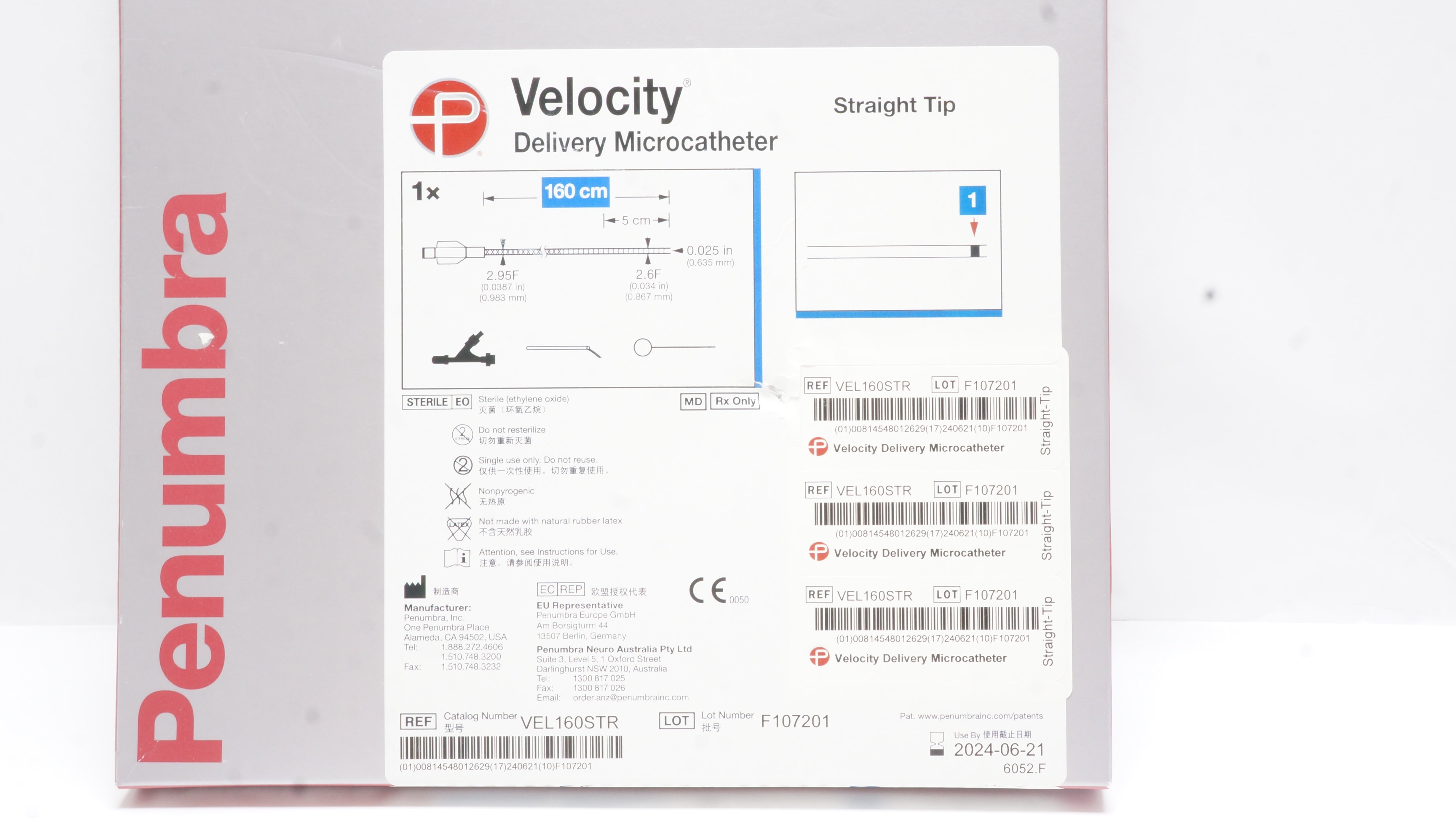 - Penumbra VEL160STR Velocity Delivery Microcath. Straight Tip 160cm (x)
