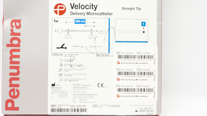 - Penumbra VEL160STR Velocity Delivery Microcath. Straight Tip 160cm (x)