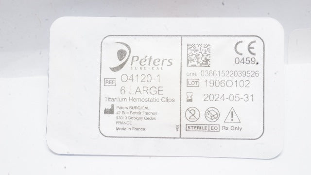 - Peters Surgical 04120-1 Large Titanium Hemostatic Clips (x) - Pack of 6