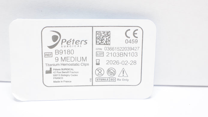 - Peters Surgical B9180 9 Medium Titanium Hemostatic Clips