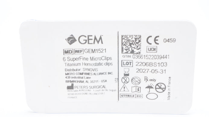 - Peters Surgical GEM1521 GEM Titanium Hemostatic 6 SuperFine MicroClips