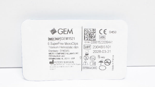 - Peters Surgical GEM1521 GEM Titanium Hemostatic 6 SuperFine MicroClips