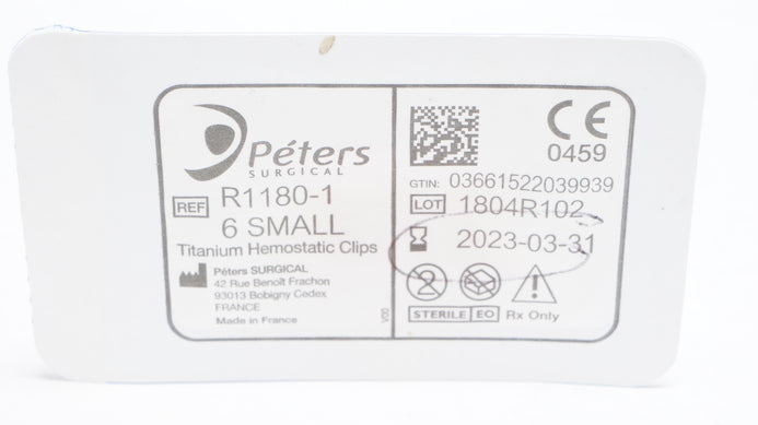 - Peters Surgical R1180-1, 6 Titanium Hemostatic Clips, Small (x)