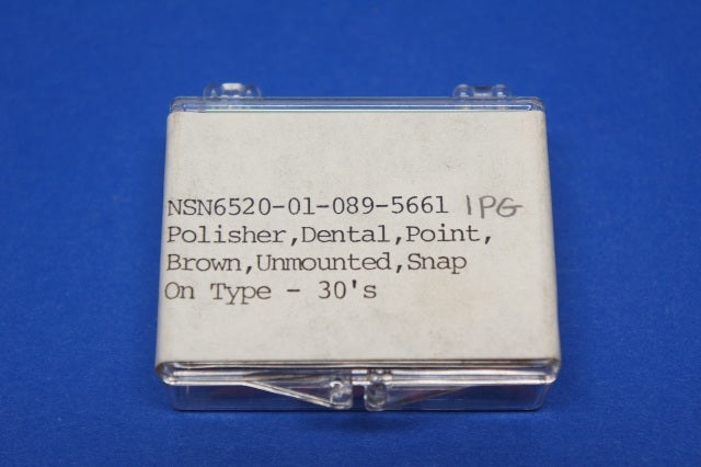 Special features: point,brown,pre-polishing,unmounted,snap-on type;made of flexible molded polysiloxane rubber impregnated with an abrasive agent;point-shaped;for use with polishers, nsn 6520-01-089-5660,6520-01-089-5662,and 6520-01-089-5663; and for use with mandrels,