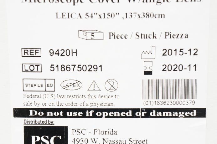 - PSC 9420H Microscope Cover W/Angle Lens Leica 54inch x 150inch (x) - Box of 5