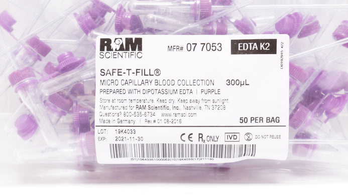 - RAM Scientific 07 7053 Micro Capillary Blood Collection 300uL - Pack of 50 (x)