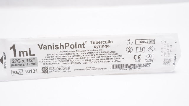 - Retractable Technologies 10131 VanishPoint Tuberculin Syringe 1mL,27G x 1/2in(x)