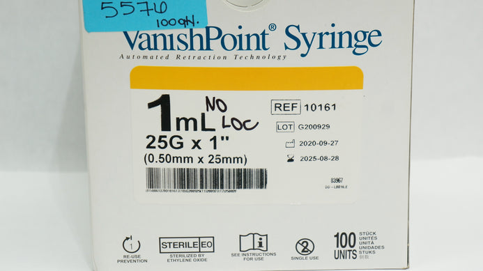 - Retractable Technologies 10161 VanishPoint Syringe 1mL, 25G x 1inch - Box of 100