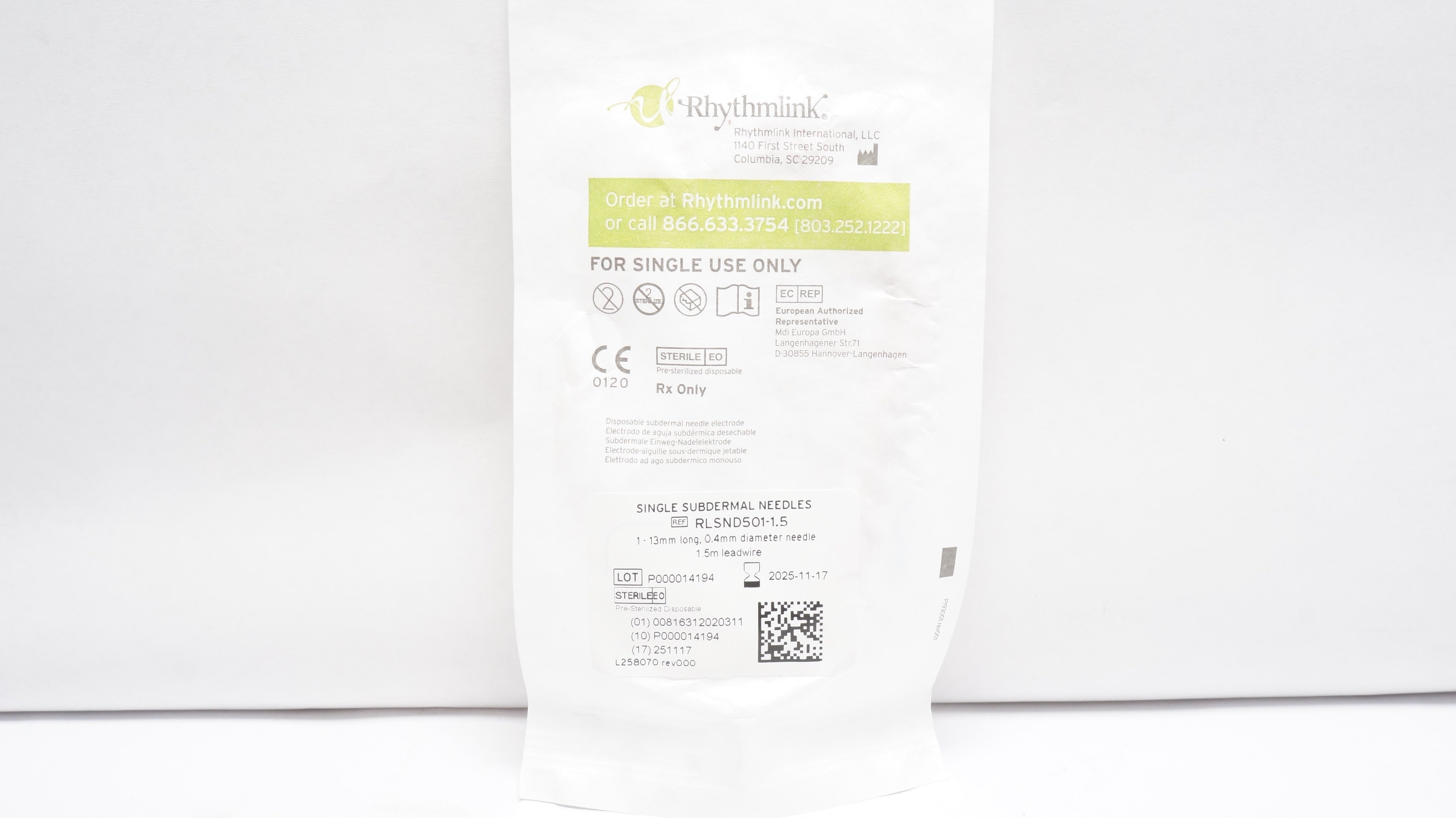 - Rhythmlink RLSND501-1.5 Single Subdermal Ndles 13mm x 0.4mm x 1.5m (x)