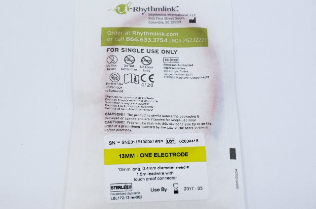 - Rhythmlink Single 13 mm Subdermal Ndle Electrode, Color: Red (x)