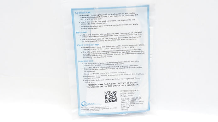 - Roscoe EP2020WC2-INTM Tens Electrodes, 2 x 2inch White Cloth (x) - Pack of 4