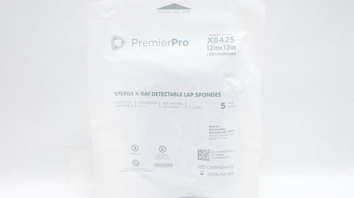 - S2S Global X8425 PremierPro Sterile X-Ray Detectable Lap Sponges - Pack of 5