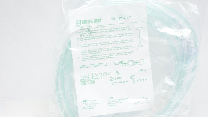 - Salter Labs 4707-7-7 Salter-Style Adult EtCO2/O2 Nasal Divided Cannula 7ft.